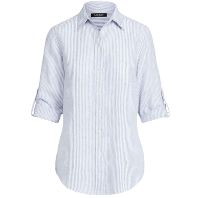 CAMISA M/L DAMA LAUREN-BLUE/WHITE